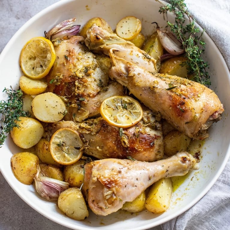 Save I first made this dish on a rainy Wednesday when I had absolutely no energy to cook anything complicated. I threw chicken thighs, potatoes, and lemon slices into one pan, slid it into the oven, and forgot about it for forty minutes. When I opened the oven door, the smell of roasted thyme and caramelized lemon hit me so hard I actually called my neighbor over to try it. She still asks me to make it every time she visits.