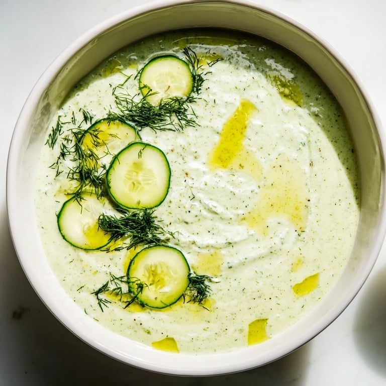 - Give it a gentle stir when you're ready to serve—sometimes the yogurt settles a bit during chilling. Ladle into chilled bowls, top with a few thin cucumber slices, a pinch of fresh dill, and a small drizzle of olive oil.