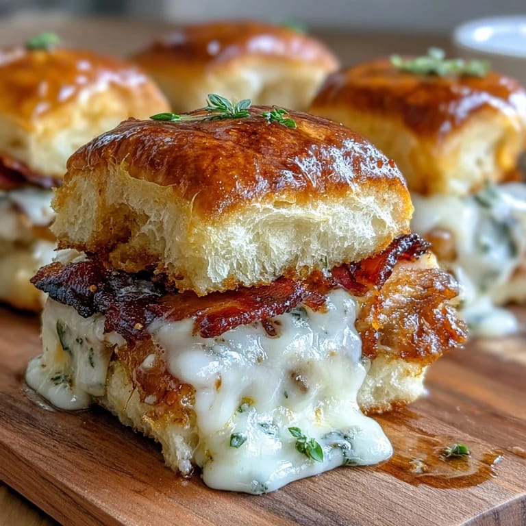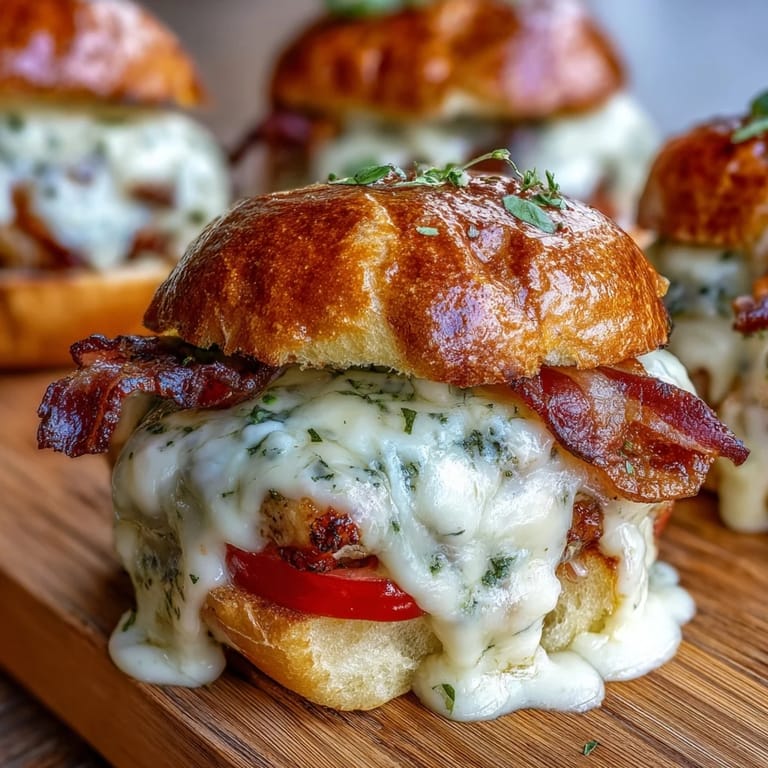 These sliders hit different when they're assembled just before baking—the components stay distinct instead of getting soggy, and the heat melds everything together without making the bread tough. I've learned to do my mise en place obsessively for this recipe; having your turkey sliced, bacon ready, tomato cut, and sauce finished before you start assembling means you can get them into the oven while everything is still at its best. The 25 minutes of total cooking and assembly is actually quite generous, so don't feel rushed.