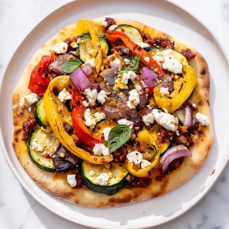 The vegetables are just a starting point. In spring, I use asparagus and thin-sliced spring onions. In summer, when tomatoes are at their peak, I skip the roasting and just arrange ripe slices on the naan before it goes in the oven. Winter calls for roasted broccoli or Brussels sprouts, which char beautifully and develop a slight bitterness that pairs perfectly with the saltiness of the olives.